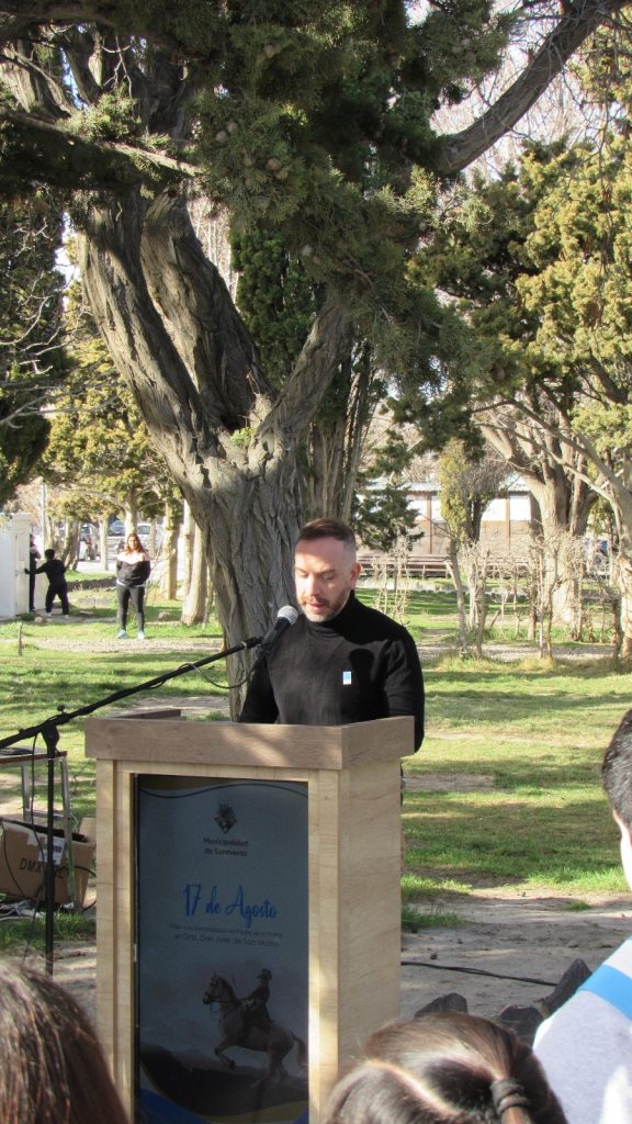 En el marco del 174° aniversario del “Paso a la Inmortalidad” del General San Martín el Viceintendente de Sarmiento Emanuel Venter Jenks junto al el equipo de Gobierno, concejales y comunidad llevaron a cabo el acto oficial en homenaje al Padre de la Patria.