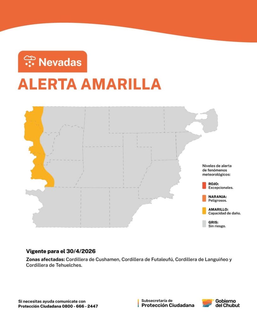 La cordillera de Cushamen continuara afectada durante la madrugada del viernes 1.