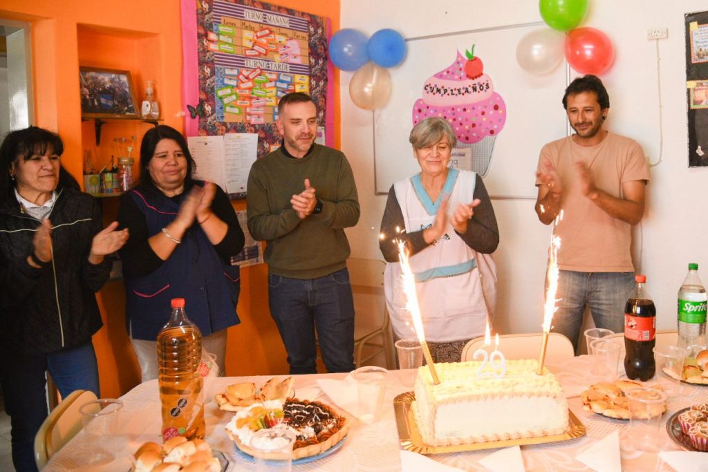 Las autoridades municipales fueron recibidas por la Directora de la Institución Alba Battistina y la comunidad educativa de la institución que celebró con un breve acto, palabras alusivas a la fecha y el corte tradicional de la torta.