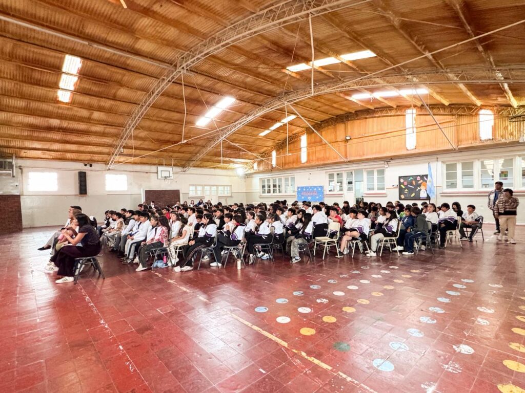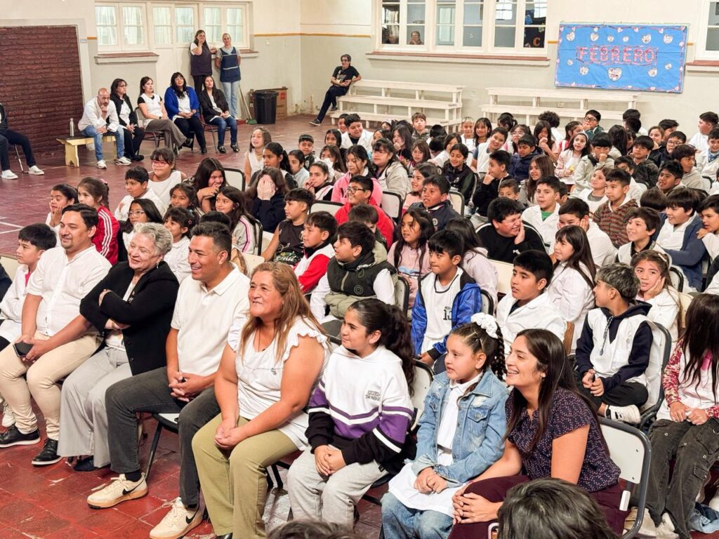 El acto en Sarmiento se realizó desde el SUM de la escuela 82 y contó con la presencia de alumnos, equipo docente y directivo de la escuela 82 “Juan María Gutiérrez”, el Intendente Sebastián Balochi.