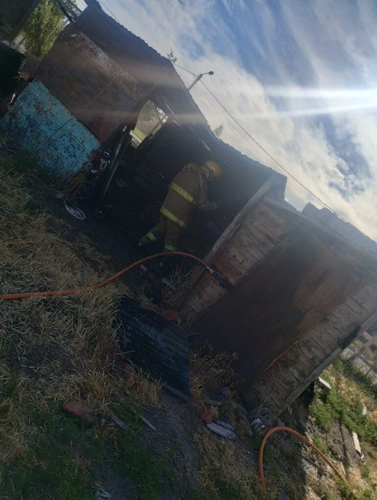 Una dotación de Bomberos junto a una unidad de apoyo arribaron al lugar constatando un principio de incendio en un galpón de aproximadamente 6 x 4 metros.