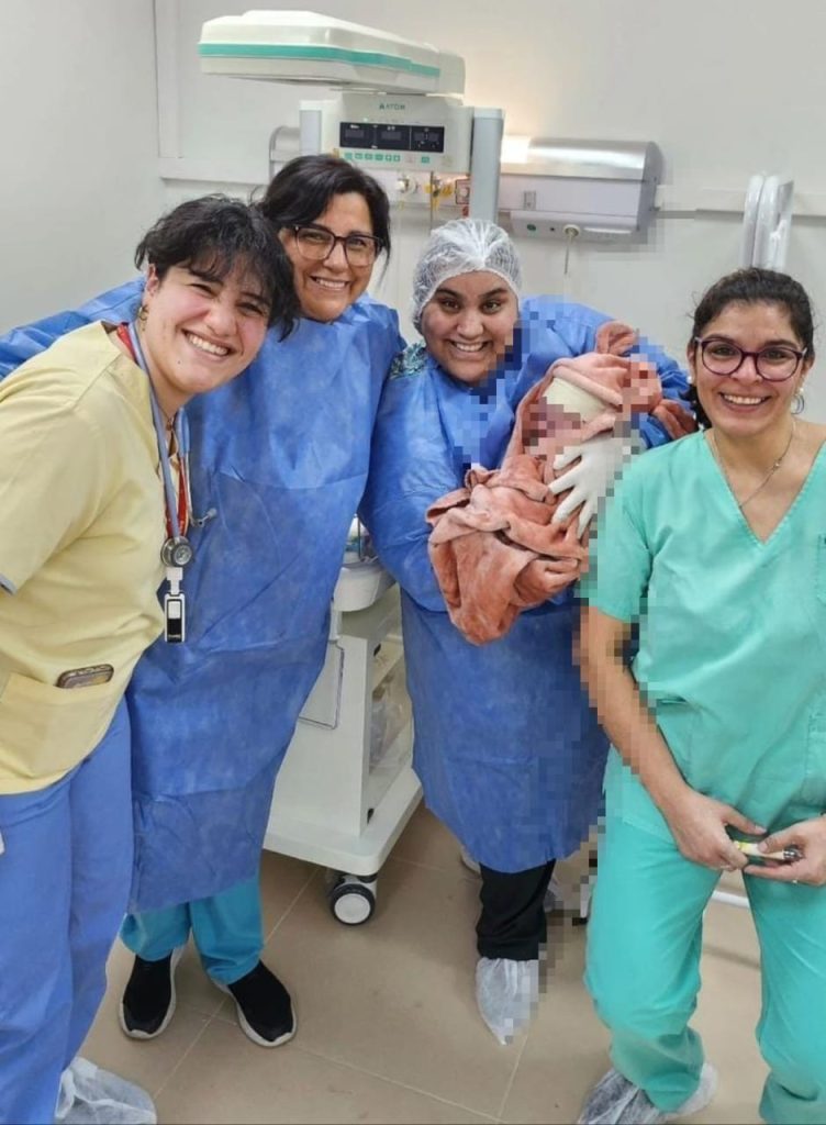 Las imágenes hablan por sí solas, sus rostros de felicidad y satisfacción reflejan el compromiso y el esfuerzo por brindar toda la colaboración necesaria para que la niña y la madre esté bien acompañadas y asistidas.