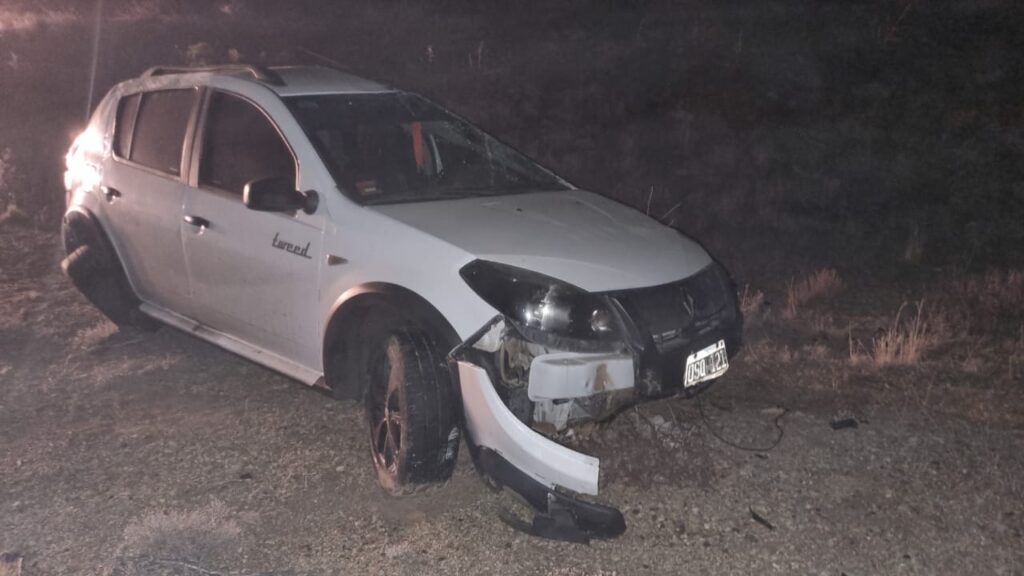 El personal policial constato que (01) vehículo marca Renault, modelo Stepway, color blanco, conducido por la ciudadana Z.N (38), DOCENTE, perdió su eje en la ruta debido a la calzada resbaladiza, quedando el rodado en el descampado.