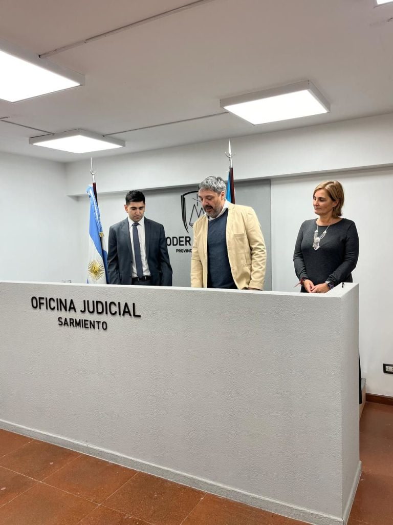 La ceremonia se desarrolló en la sala de audiencia n°1 de la Oficina Judicial de Sarmiento.