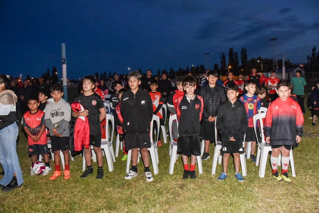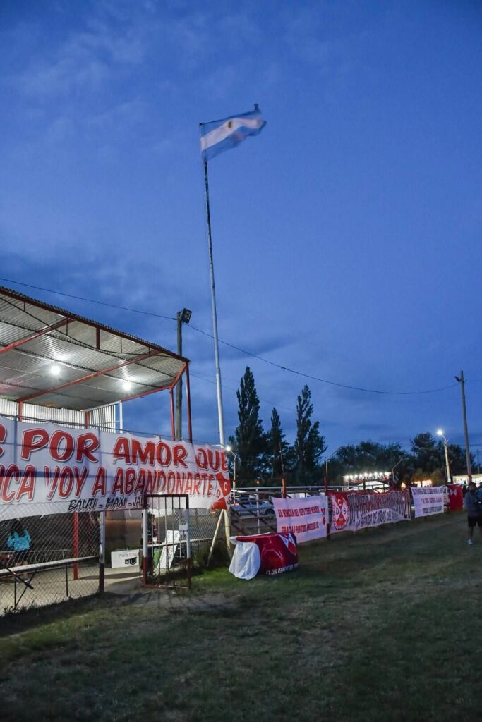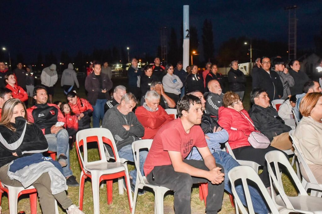 Tras el izamiento del Pabellón Nacional a cargo del Presidente del Club Jorge Muñoz, el Intendente Sebastián Balochi y el Viceintendente Emanuel Venter Jenks se entonaron las estrofas del Himno Nacional Argentino, la Marcha de Malvinas y el Himno de la Provincia del Chubut.
