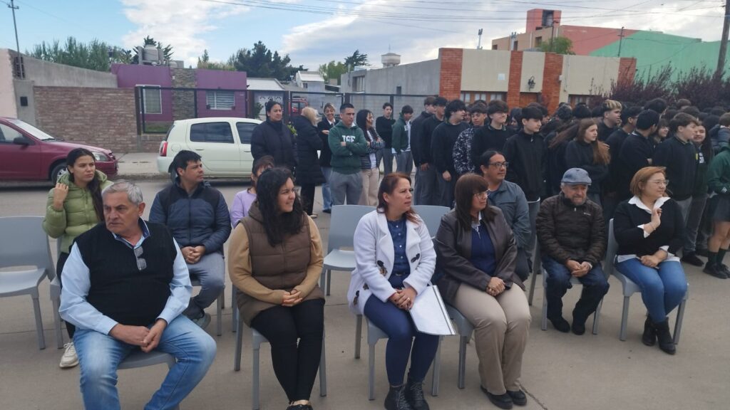 Junto al Equipo Directivo, docentes, alumnos y vecinos se llevó adelante la entrega de la DECLARACIÓN N° 012/25 por medio de la cual se declaró de Interés Legislativo el mural pintado en memoria de la sarmientina Susana Jenkins Roumbusek, desaparecida durante la última Dictadura Militar.Esta Declaración surgió como iniciativa del ex Concejal y amigo de Susana Jenkins , Oscar Battistina.