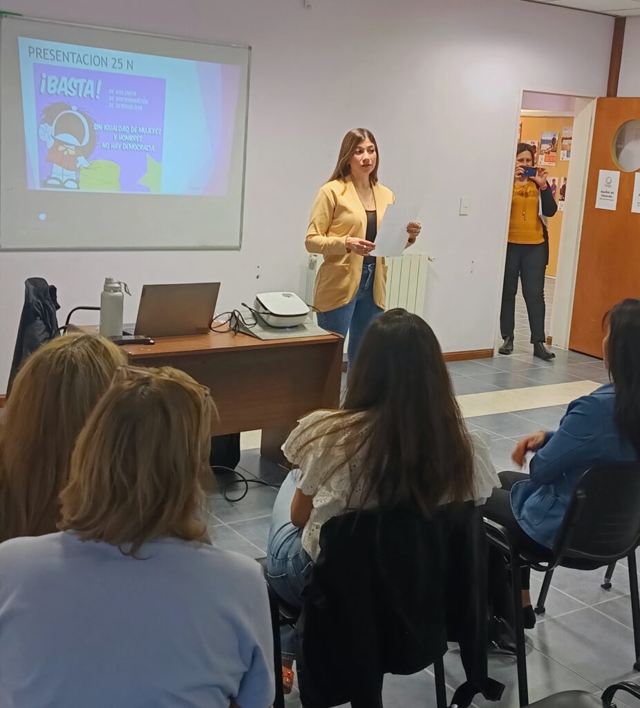 Fue en el marco de las actividades propuestas por la “Mesa Intersectorial”, donde la jefa de fiscales de Sarmiento, realizó una exposición vinculada al “Día Internacional de la Lucha contra la Violencia hacia la Mujer”.