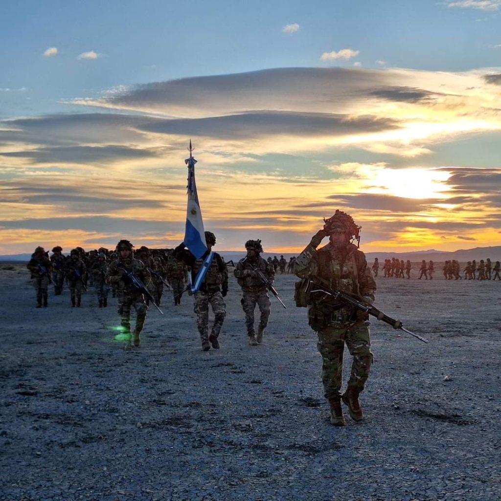 El lugar elegido para realizar los ejercicios operacionales de la Guarnición fue el escenario de la ceremonia en la cual las tropas militares de Sarmiento Chubut celebraron el 214° aniversario del nacimiento del Ejército Argentino.