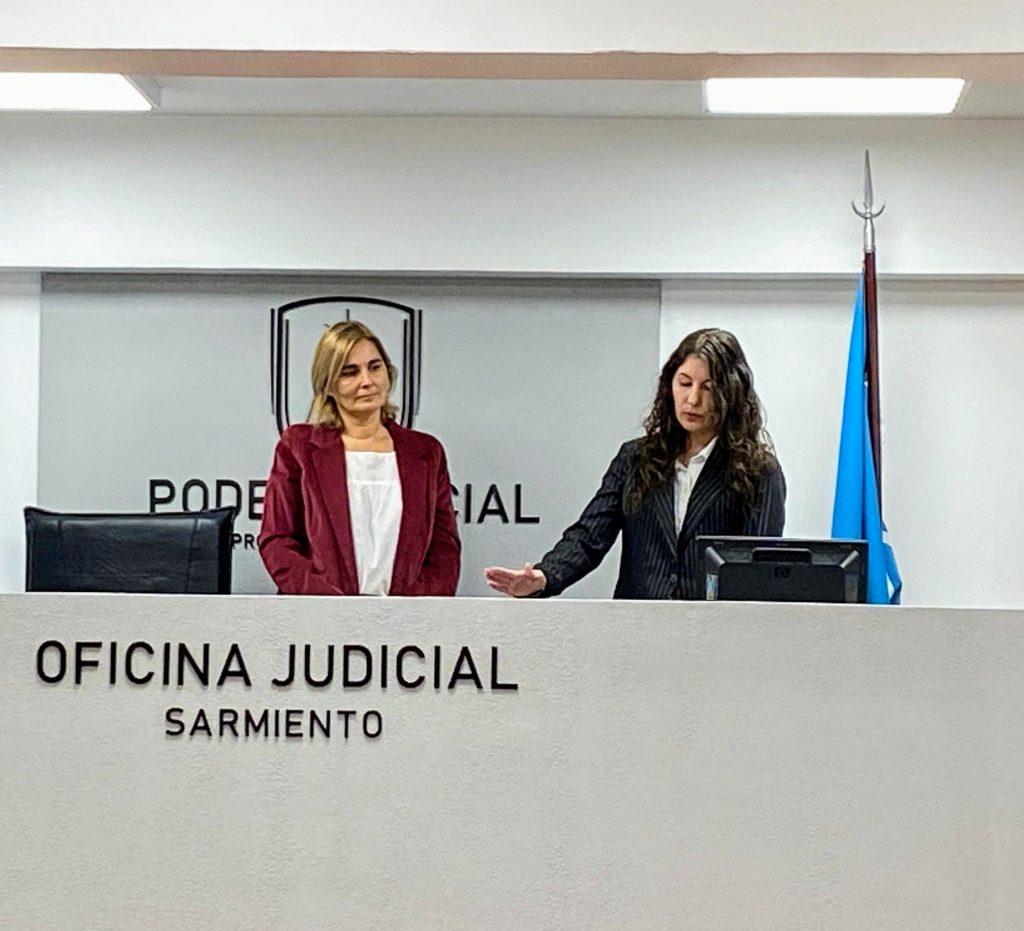 El acto se desarrolló en la Sala de Audiencias n°1 de la Oficina Judicial de Sarmiento.
