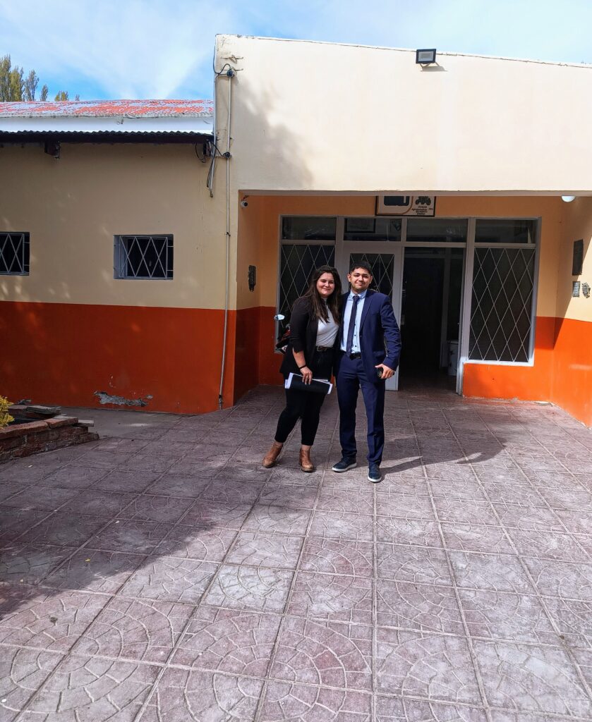 La licenciada en ciencias criminalísticas Julieta Bochatey y el funcionario Alexis Ubilla, del Ministerio Público Fiscal, se presentaron en Colegio n° 725, a los fines de hacer entrega de una serie de elementos de trabajo, que fueron decomisados por los investigadores, en el marco de una contravención por comercialización de carne de animales faenados en forma clandestina.
