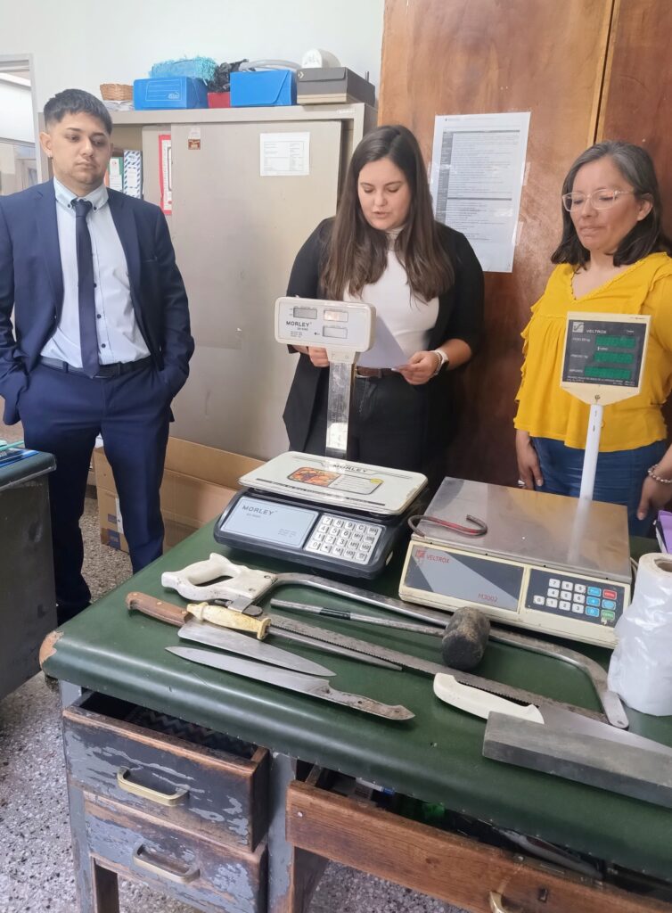 En la ocasión, la directora de la escuela, profesora María de los Ángeles Girón, firmó el acta mediante la cual se dejó constancia de la entrega de dos balanzas electrónicas, una sierra metálica, tres cuchillos, una chaira, una piedra de afilar una maza, y un rollo de bolsas plásticas transparentes.
