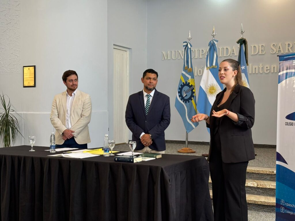 El acto se desarrolló en el Salón de los Intendentes de la Municipalidad de Sarmiento y contó con la presencia de integrantes del Colegio Público de Abogados de nuestra Ciudad, Dr. Hansel Yalil Bravo (Presidente), Nicolás Caro(secretario), el Juez penal de la circunscripción judicial de Sarmiento, el Dr. Mauro Emmanuel Soza, la Asesora de Familia, Dra. Cynthia English, colegas y la Secretaria de Gobierno Florencia Mosqueira por parte del Municipio.-