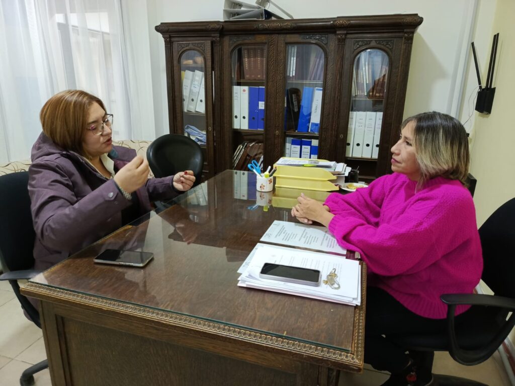 En el marco de la agenda que lleva adelante la presidente del Concejo Deliberante de Sarmiento, profesora Claudia Torres esta mañana recibió en su despacho a la referente de UOCRA Mujeres Sarmiento Ana Reyes.