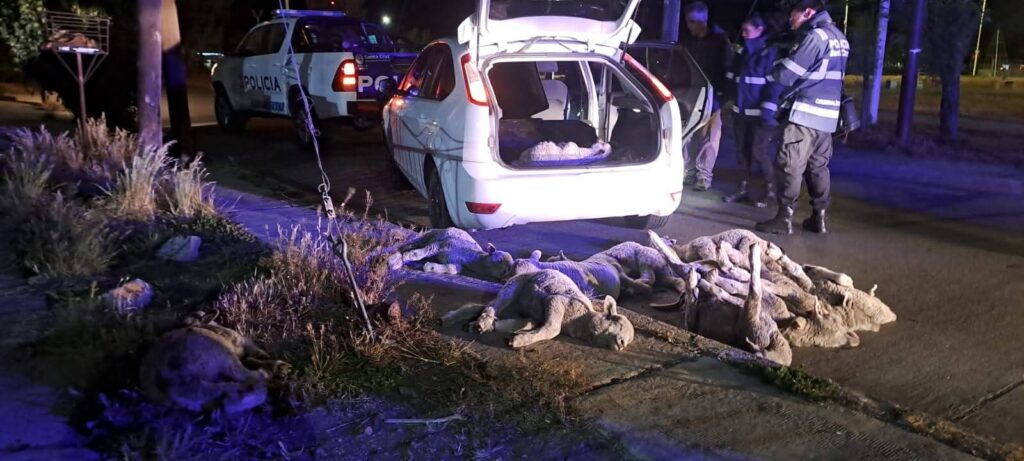 Con intervención del Juzgado Provincial de Primera Instancia Nº 1, se realizó la requisa vehicular, constatándose en el interior la presencia de once corderos maniatados, de los cuales cuatro estaban muertos.