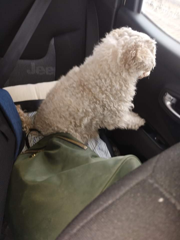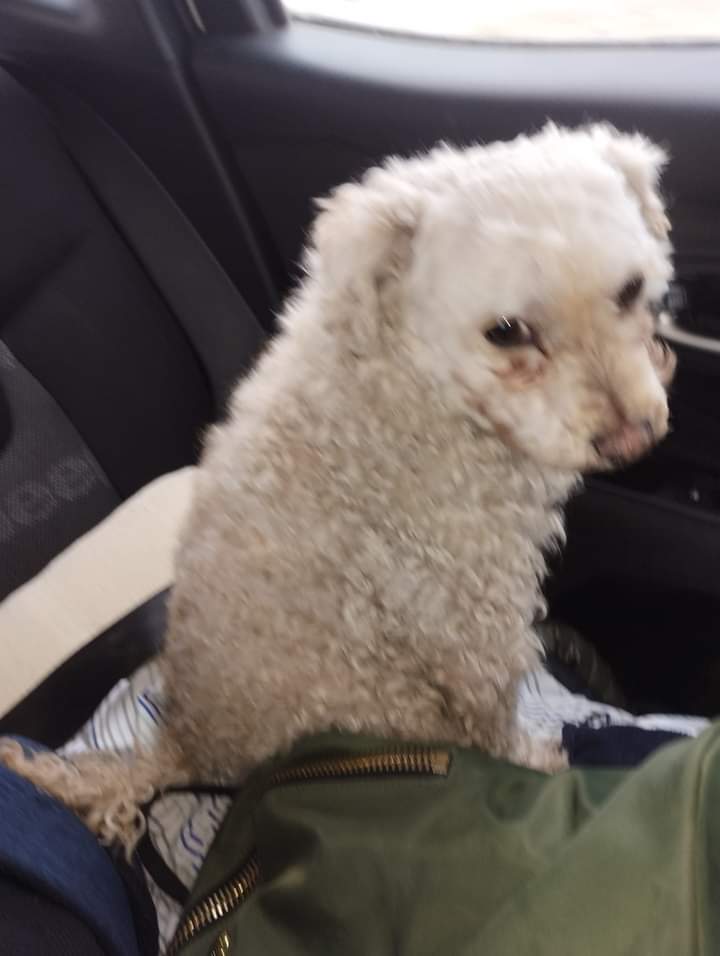 Susana Beatriz Cárdenas busca a la familia de un perro caniche que encontró ocasionalmente cuando viajaba en dirección a Caleta Olivia Santa Cruz.