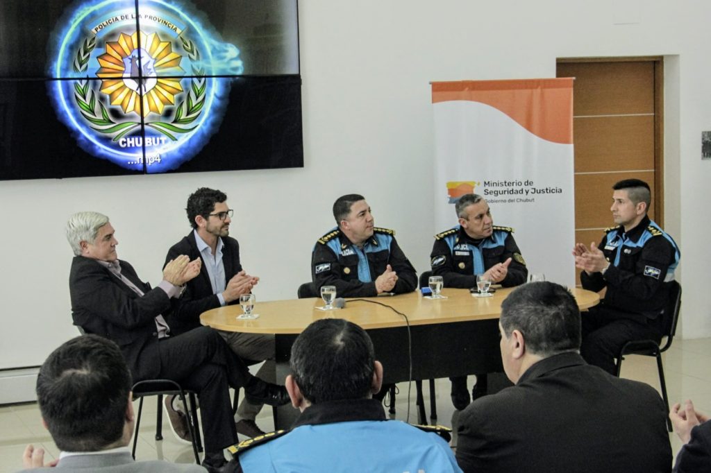 El acto se realizó en la Jefatura de Policía en la ciudad capital y con las presencias del subsecretario de Seguridad, Claudio Fernández; el Procurador General de la Provincia, Jorge Miquelarena; el fiscal jefe de Puerto Madryn, Alex Williams; el director de Seguridad del Banco del Chubut, Marcelo Gauna; directores de la Plana Mayor y jefes de área de la fuerza.