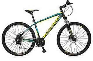 Es una bicicleta marca GRIBOM, rodado 29, color negro con detalles en verde y amarillo,.
