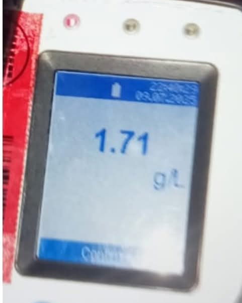 El conductor del vehiculo Ford Ranger, identificado como (D.A) se le practicó el correspondiente test de alcoholemia, el cual arrojó resultado positivo, con un nivel de 1.71 g/l en sangre, superando ampliamente el límite legal permitido.