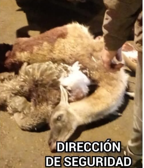 Durante la inspección de la camioneta Ford Ranger se constató que en la caja del rodado se transportaban 01guanaco y (02) avestruz, sin documentación respaldatoria que justifique su tenencia o traslado.