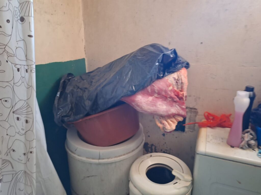En la diligencia se llevan a cabo resultados ALTAMENTE POSITIVOS, observando en el interior una carniceria clandestina.