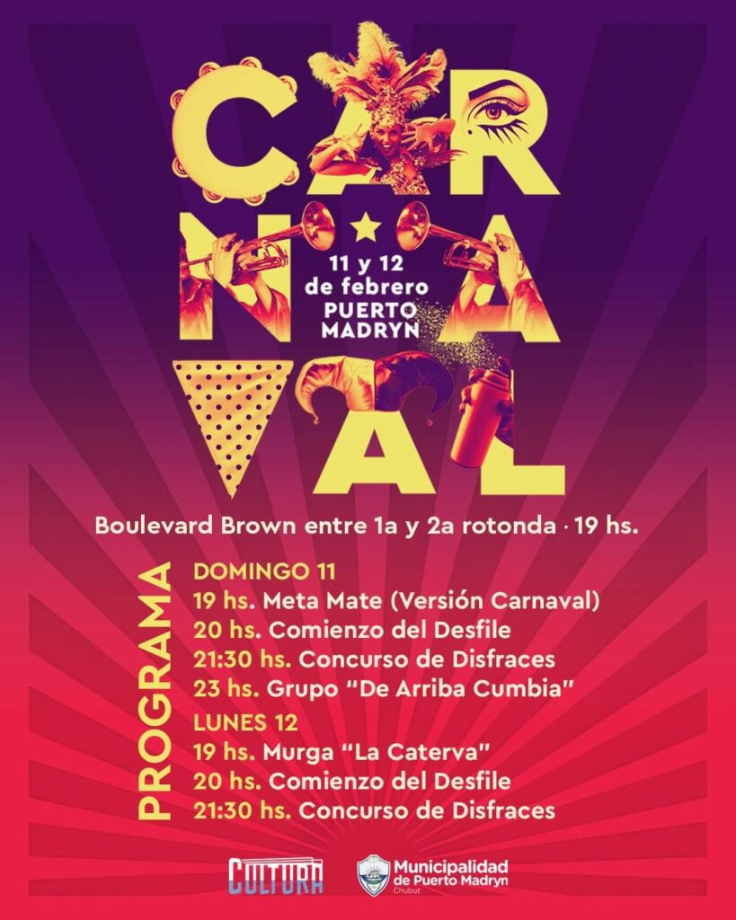 La Subsecretaría de Cultura de la Municipalidad de Puerto Madryn preparó los festejos de carnaval en un fin de semana largo en el que muchos visitarán la ciudad.