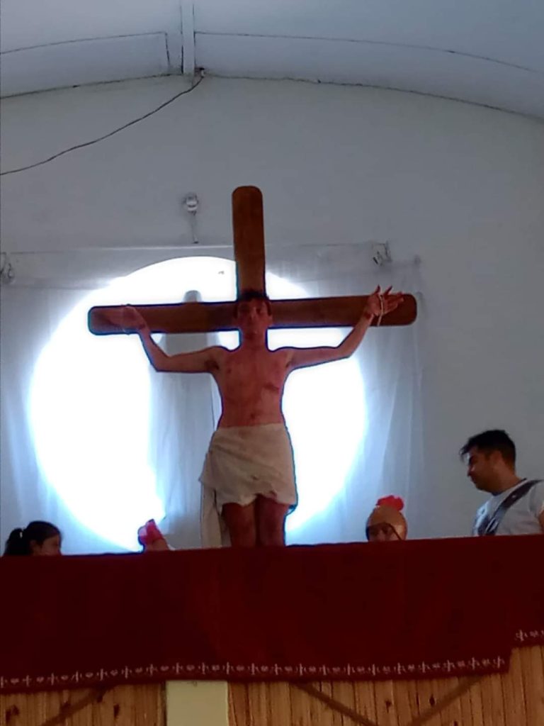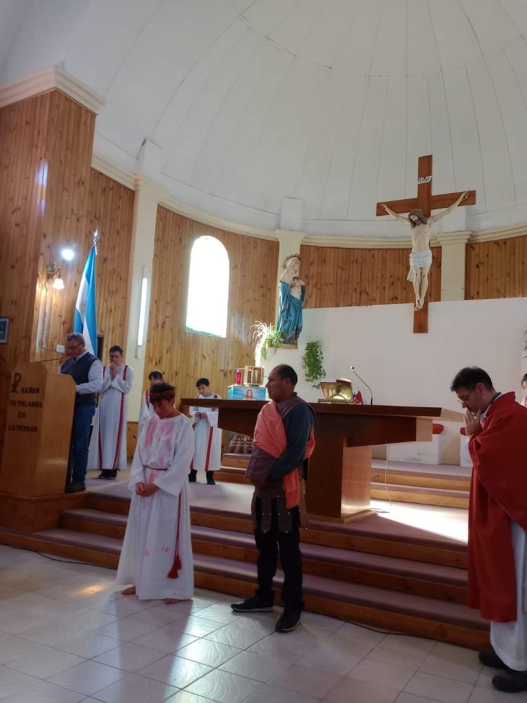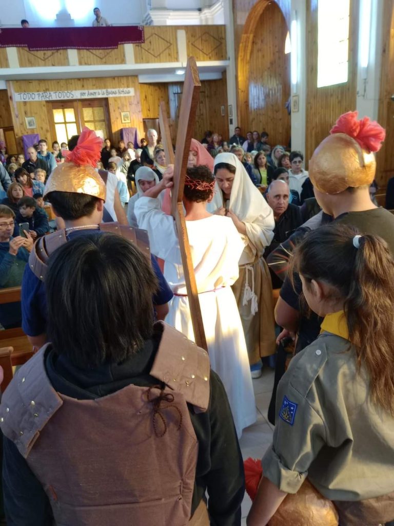 Cientos de fieles se congregaron este viernes en el en la parroquia para participar del tradicional Vía Crucis, una representación de la Pasión de Cristo desde su enjuiciamiento hasta la crucifixión.