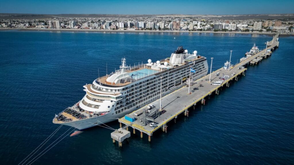 El “The World” está considerado como el buque residencial privado más grande del planeta, cuenta con 165 cabinas y llegó a Puerto Madryn proveniente de las Islas Malvinas, con 179 pasajeros y 290 tripulantes.Otra particularidad es que el itinerario se va modificando por votación de los pasajeros, muchos de los cuales viven permanentemente a bordo.
