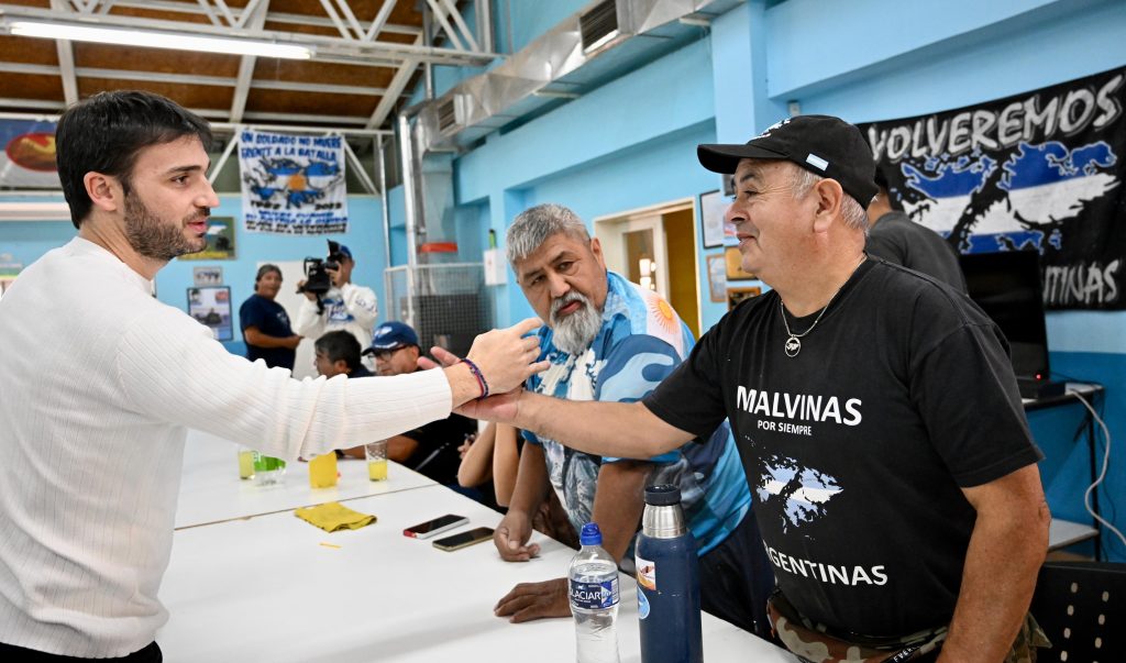 El Gobernador del Chubut, Ignacio “Nacho” Torres, se hizo presente este miércoles en el Centro de Veteranos de Guerra de la ciudad de Comodoro Rivadavia, donde fue recibido por las autoridades de dicha institución, encabezada por su presidente Juan Pérez, así como también por veteranos de la Guerra de Malvinas y sus familias, quienes compartieron un emotivo encuentro con el mandatario provincial.
