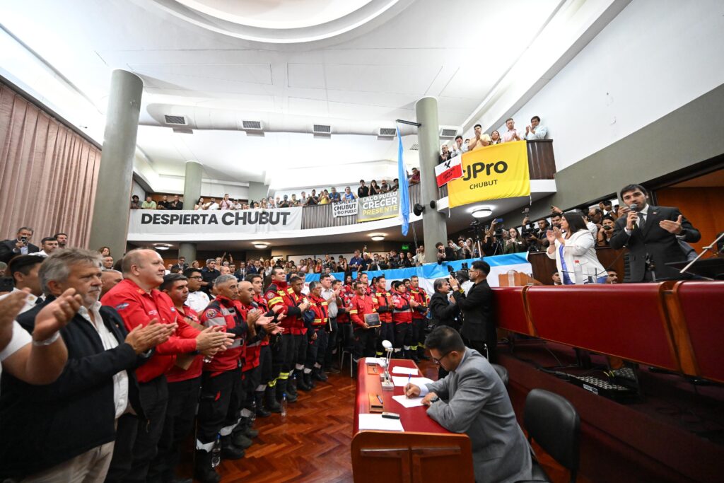 Torres inició su alocución pidiendo “un fuerte reconocimiento y aplauso a los verdaderos héroes de este año, que pusieron el cuerpo, arriesgaron su vida y mostraron que nuestros brigadistas y bomberos voluntarios son el ejemplo de resiliencia y vocación de servicio, siendo un orgullo para todos los chubutenses”, lo cual derivó en una extensa ovación de todos los presentes, con el saludo personal del Gobernador, quien descendió al recinto para felicitar a cada uno de los representantes de dicho sector.