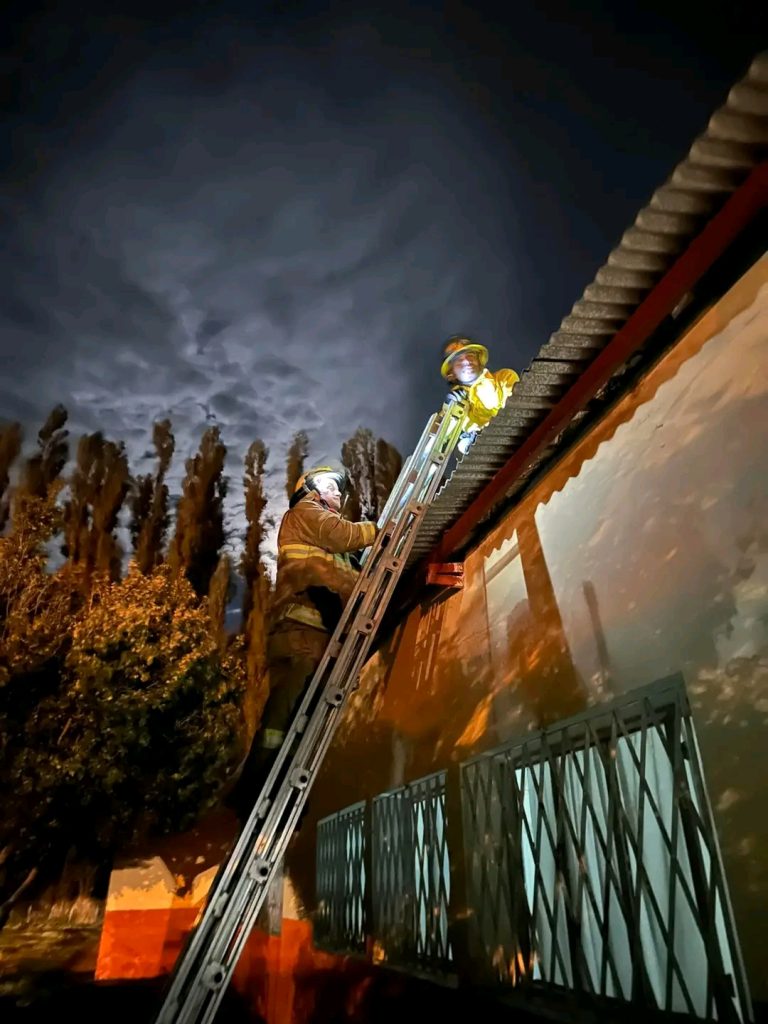 La escuela agropecuaria sufrió el desprendimiento de una chapa de una de las aulas, producto del temporal por lo que los bomberos procedieron a asegurarla.